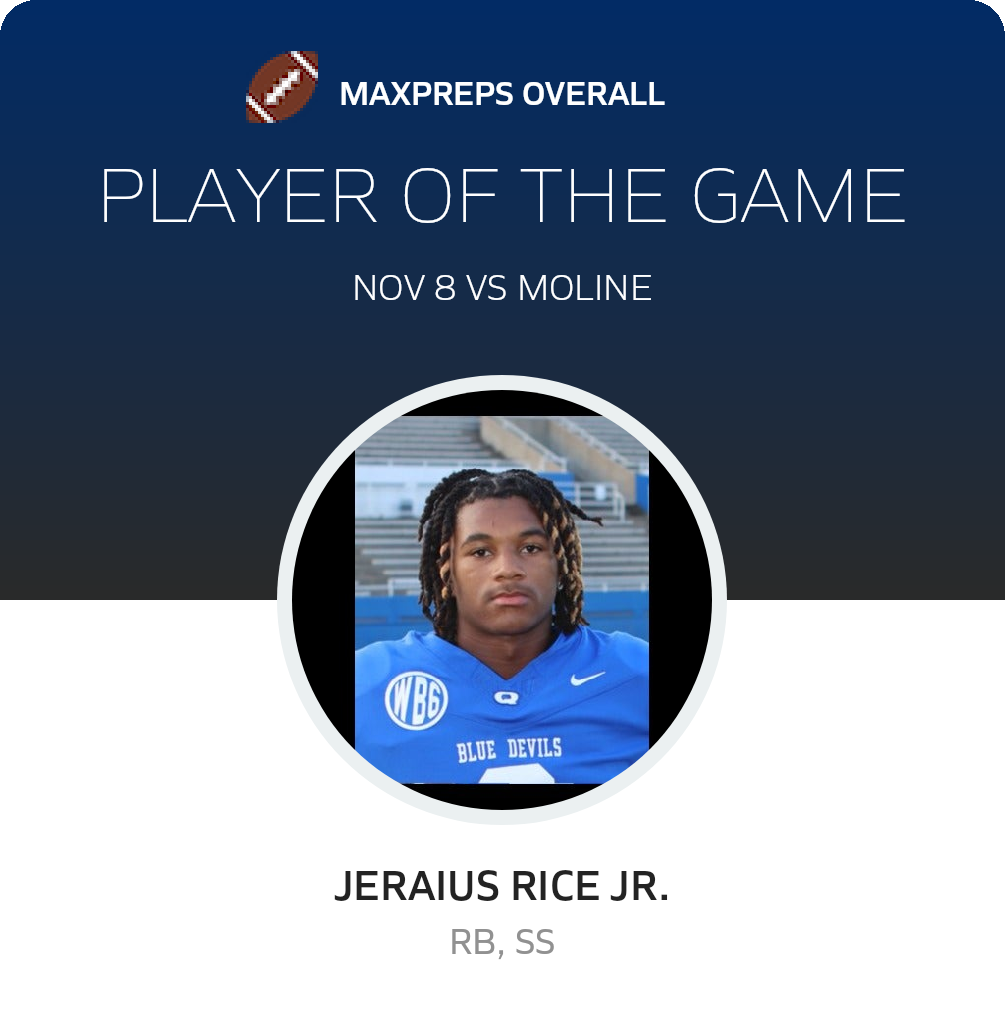 Congratulations to #3 Jeraius Rice JR. for being selected the Overall Quincy Football Player of the Game.