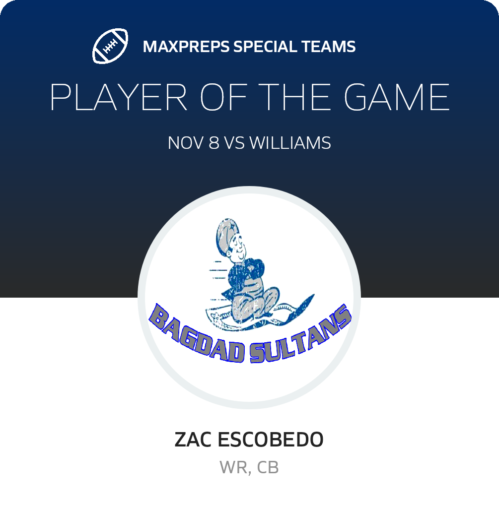 With the win, Bagdad advances its record to 10-0 on the season. The Sultans travel to Hayden (Winkelman, AZ) to encounter the Lobos in a non-league battle on Saturday, November 15. The Lobos go into the battle with a record of 11-0. Hayden won 48-38 in their recent non-league match against Mogollon (Heber, AZ)