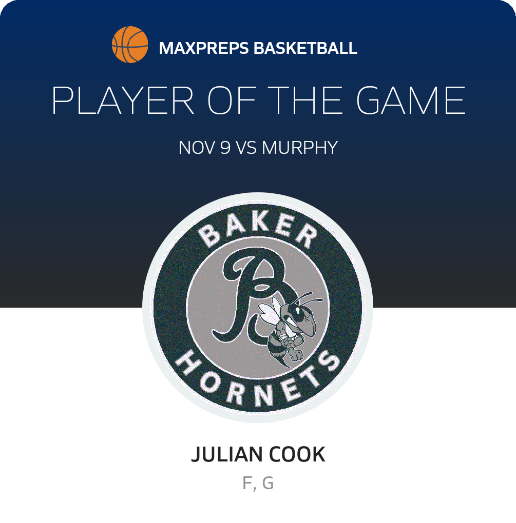 Congratulations to #44 Julian Cook for being selected the Baker JV Basketball Player of the Game.
