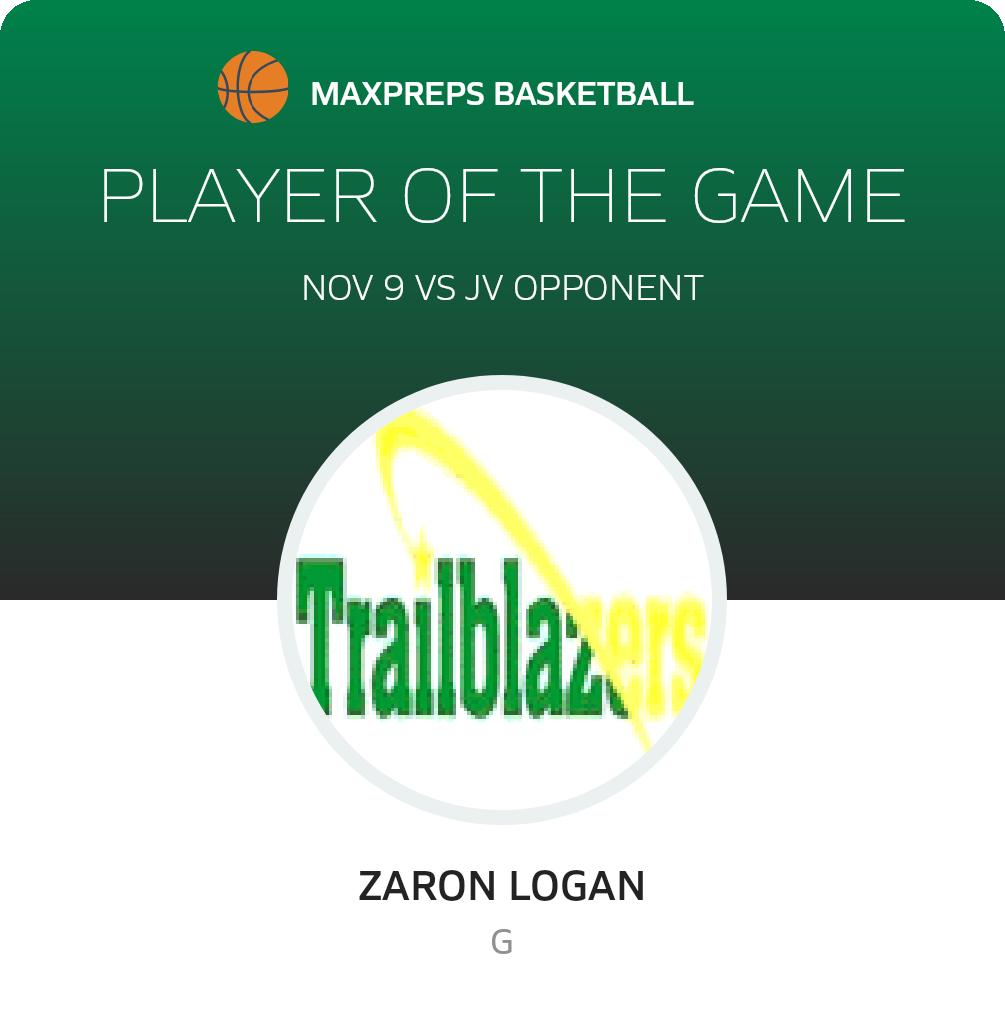 Congratulations to #43 ZaRon Logan for being selected the Asheville Trailblazers JV Basketball Player of the Game.