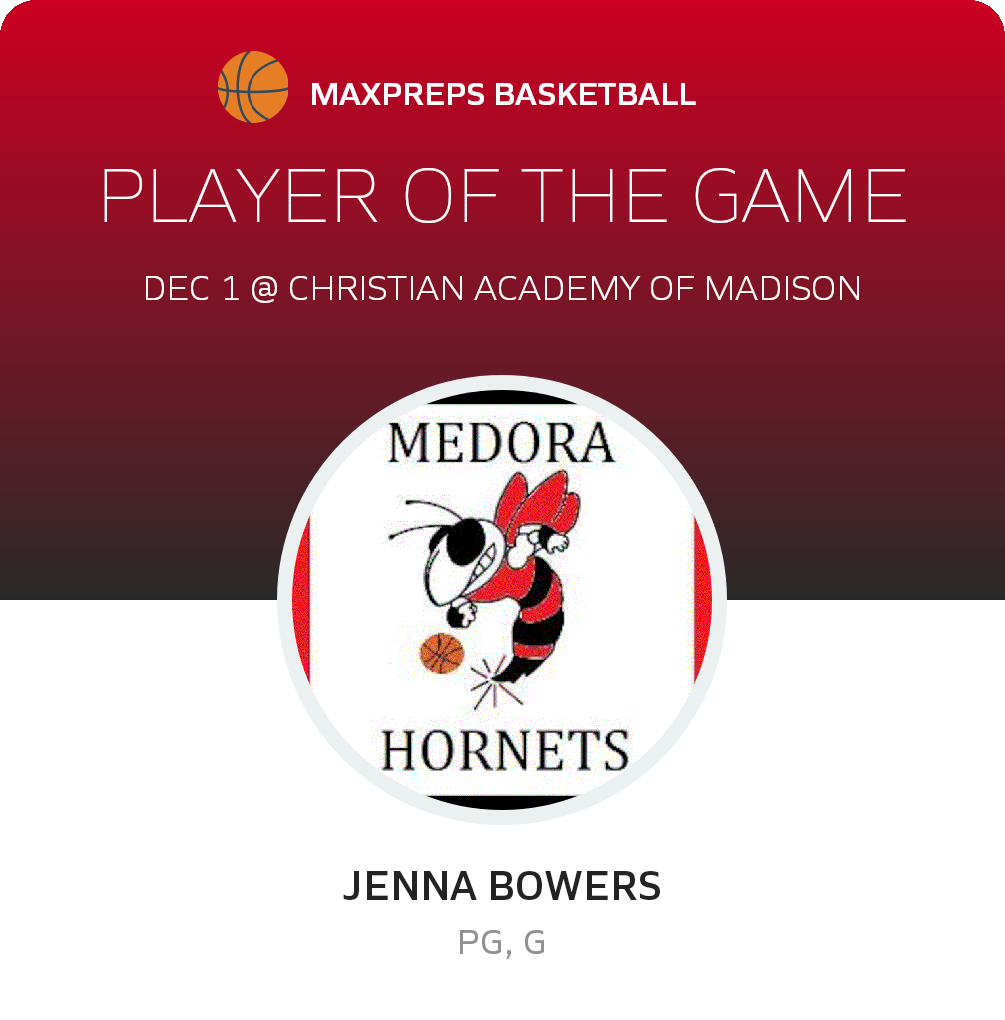 Congratulations to #5 Jenna Bowers for being selected the Medora Girls Basketball Player of the Game.