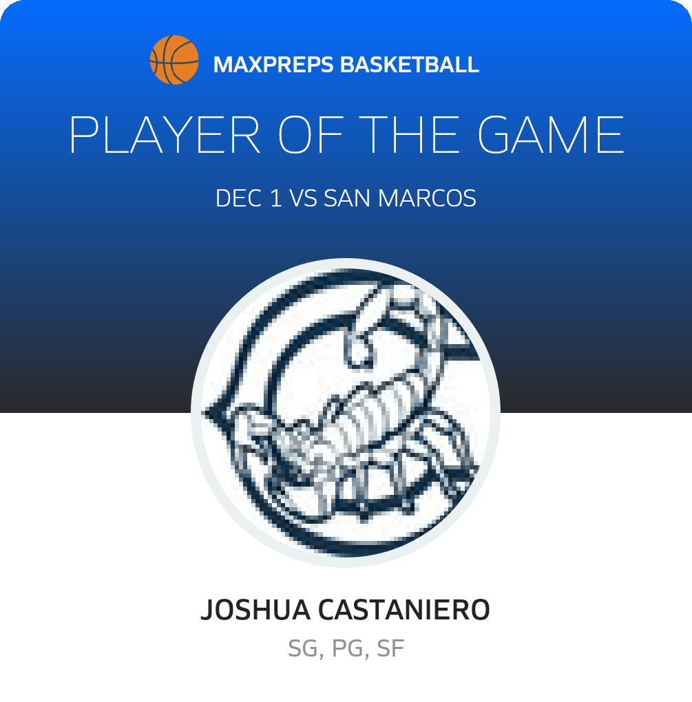 With the victory, Camarillo upgrades its record to 5-3 on the campaign. The Scorpions travel to Rio Mesa (Oxnard, CA) to play the Spartans in a non-league challenge on Saturday, December 2. The Spartans come into the challenge with a record of 4-1. Rio Mesa won 73-28 in their recent non-league challenge against Fillmore (Fillmore, CA)