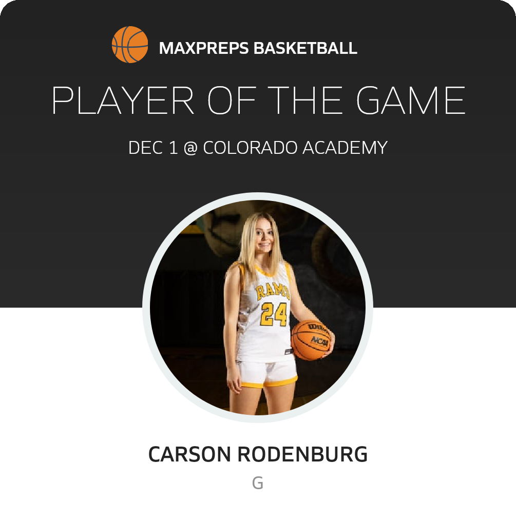 December 1, 2023: Denver, CO 80235 In Friday's non-league outing, the Green Mountain Rams (Lakewood, CO) basketball squad edged the host Colorado Academy Mustangs (Denver, CO), by a count of 41-37.