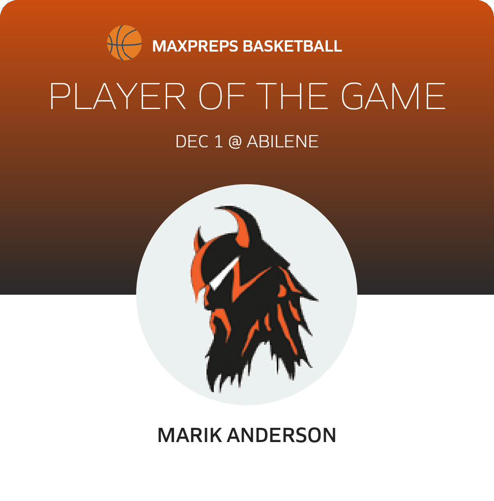 Congratulations to #23 Marik Anderson for being selected the Smoky Valley JV Basketball Player of the Game.