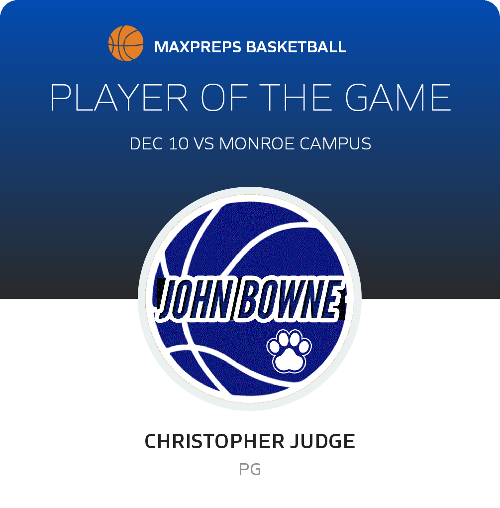 Congratulations to #3 Christopher Judge for being selected the Bowne Basketball Player of the Game.