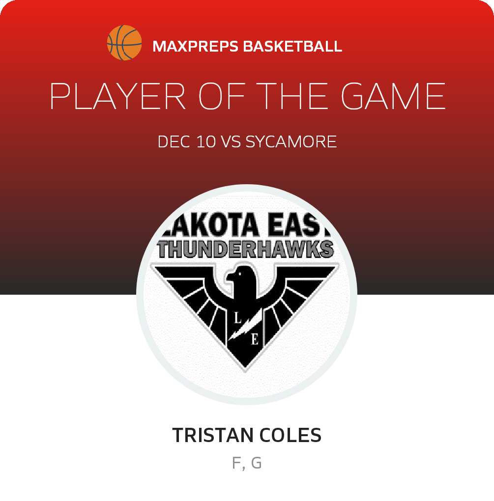 Congratulations to #32 Tristan Coles for being selected the Lakota East Freshman Basketball Player of the Game.