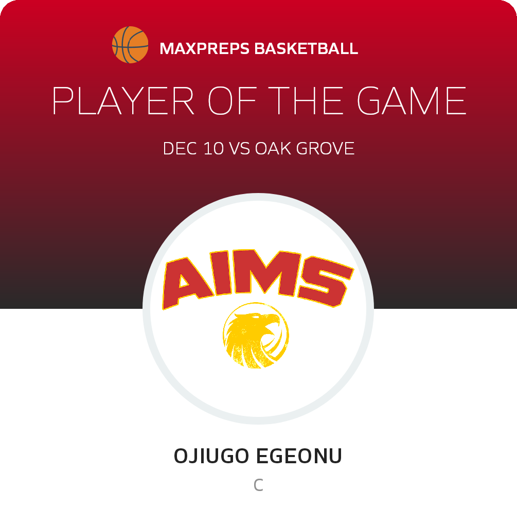 December 10, 2022: Oakland, CA 94610 The Oak Grove Eagles basketball team scored 67 points and held the host AIMS College Prep Golden Eagles to 47 in the Eagles non-league triumph on Saturday.