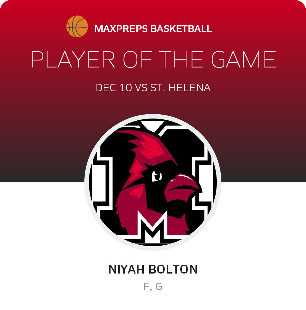 Congratulations to #15 Niyah Bolton for being selected the Mendocino Girls Basketball Player of the Game.