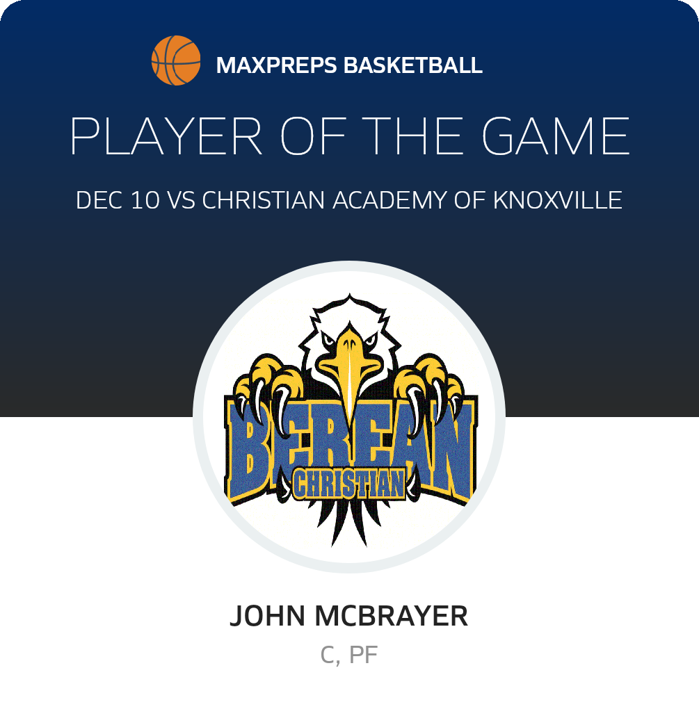In their next game, the battle the Clayton-Bradley Academy Blazers (Maryville, TN) in a Division II-A East District 1 contest, on Friday, December 13. Berean Christian will attempt to better on its 3-6 season record. The Blazers come into the contest with a 2-6 record after their 74-25 league loss to Lakeway Christian Academy (Morristown, TN).