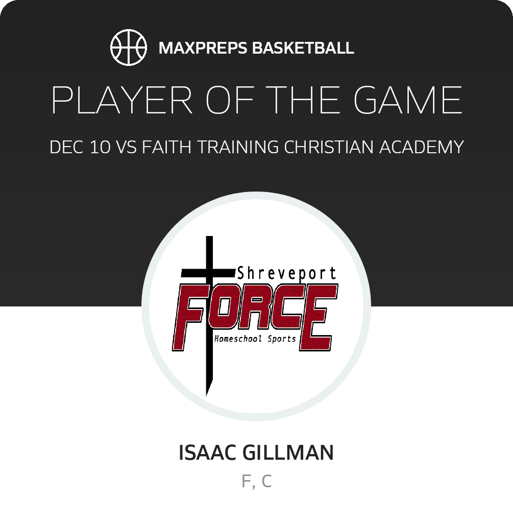 With the victory, Shreveport HomeSchool Sports advances its record to 19-6 on the year. The Force travel to Varsity Opponent (, ) to meet the in a battle on Thursday, December 12. The enter the battle with a record of 128-545. Varsity Opponent won 57-52 in their recent non-league battle against Polytechnic (Pasadena, CA)