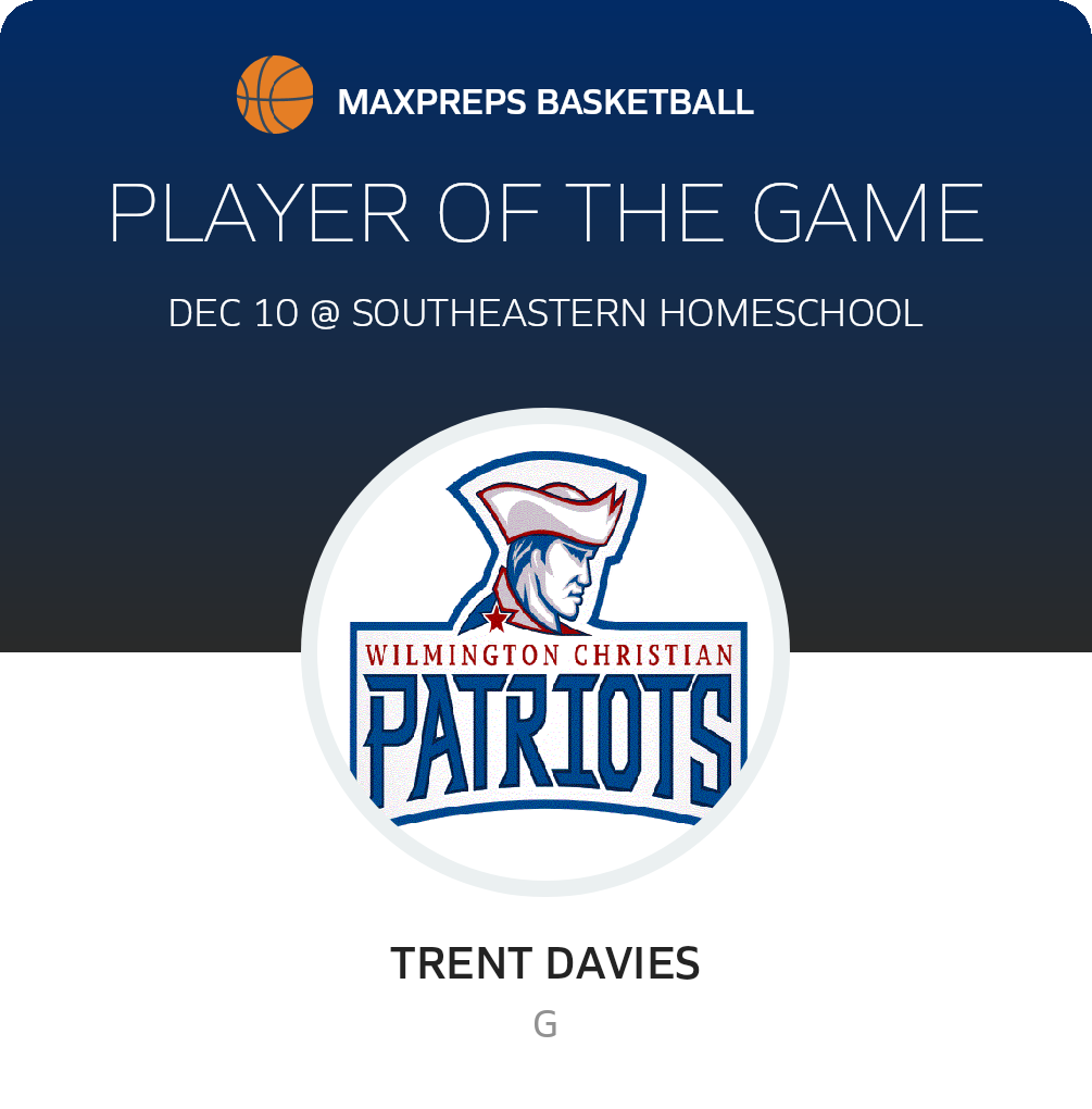 Congratulations to #13 Trent Davies for being selected the Wilmington Christian Academy Basketball Player of the Game.