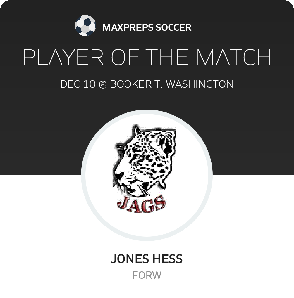 Congratulations to #1 Finn Davidson for being selected the Booker T. Washington Soccer Player of the Match.
