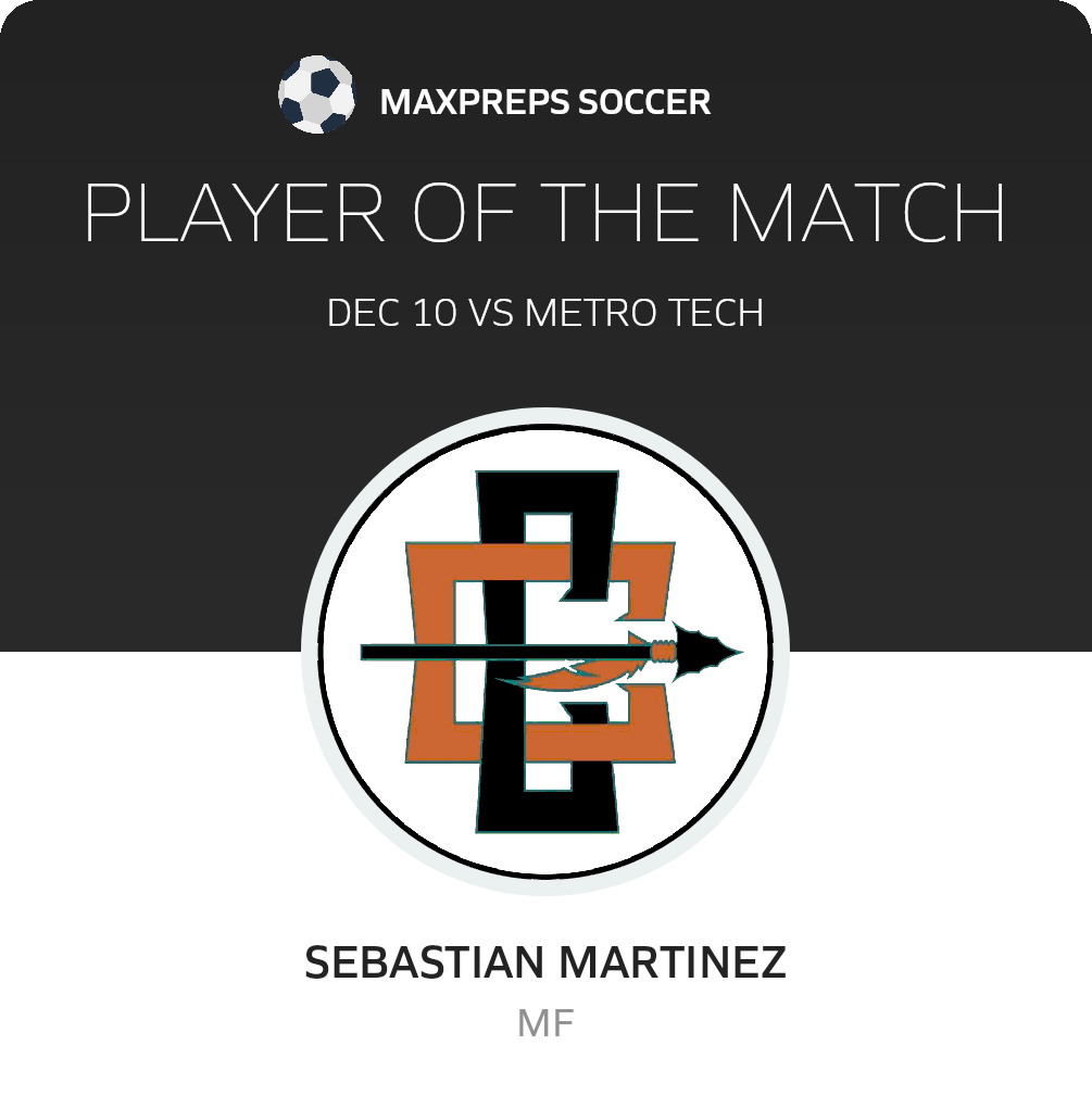 Congratulations to #8 Sebastian Martinez for being selected the Copper Canyon Soccer Player of the Match.