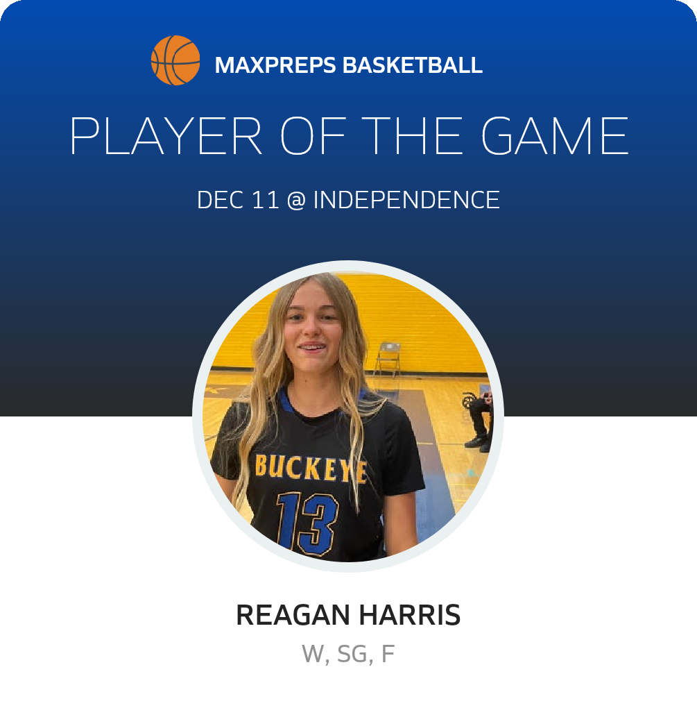 Congratulations to #13 Reagan Harris for being selected the Buckeye Girls Freshman Basketball Player of the Game.