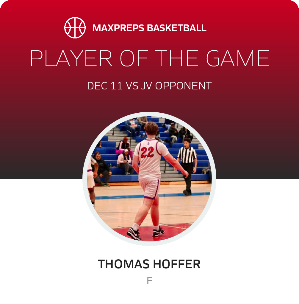 Congratulations to #22 Thomas Hoffer for being selected the Alexandria City JV Basketball Player of the Game.