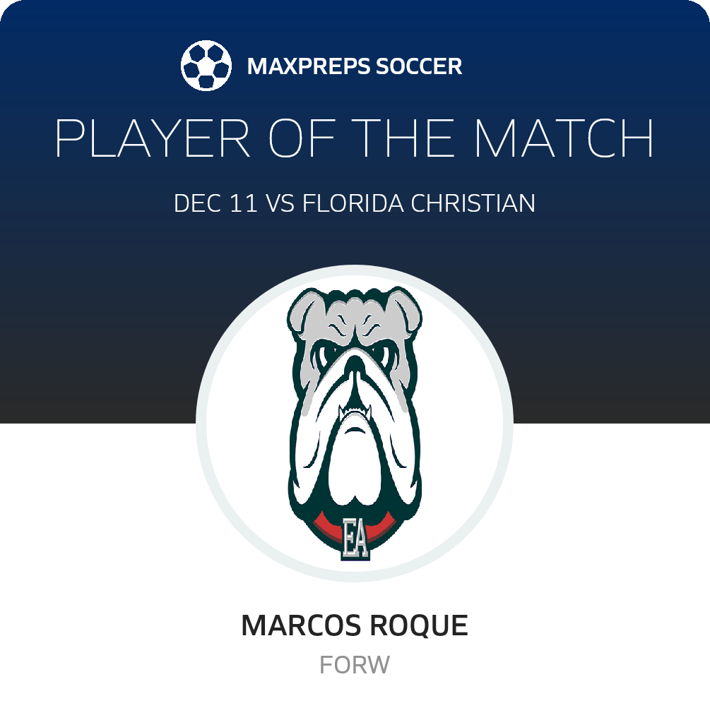 Congratulations to Marcos Roque for being selected the Hialeah Educational Academy Soccer Player of the Match.