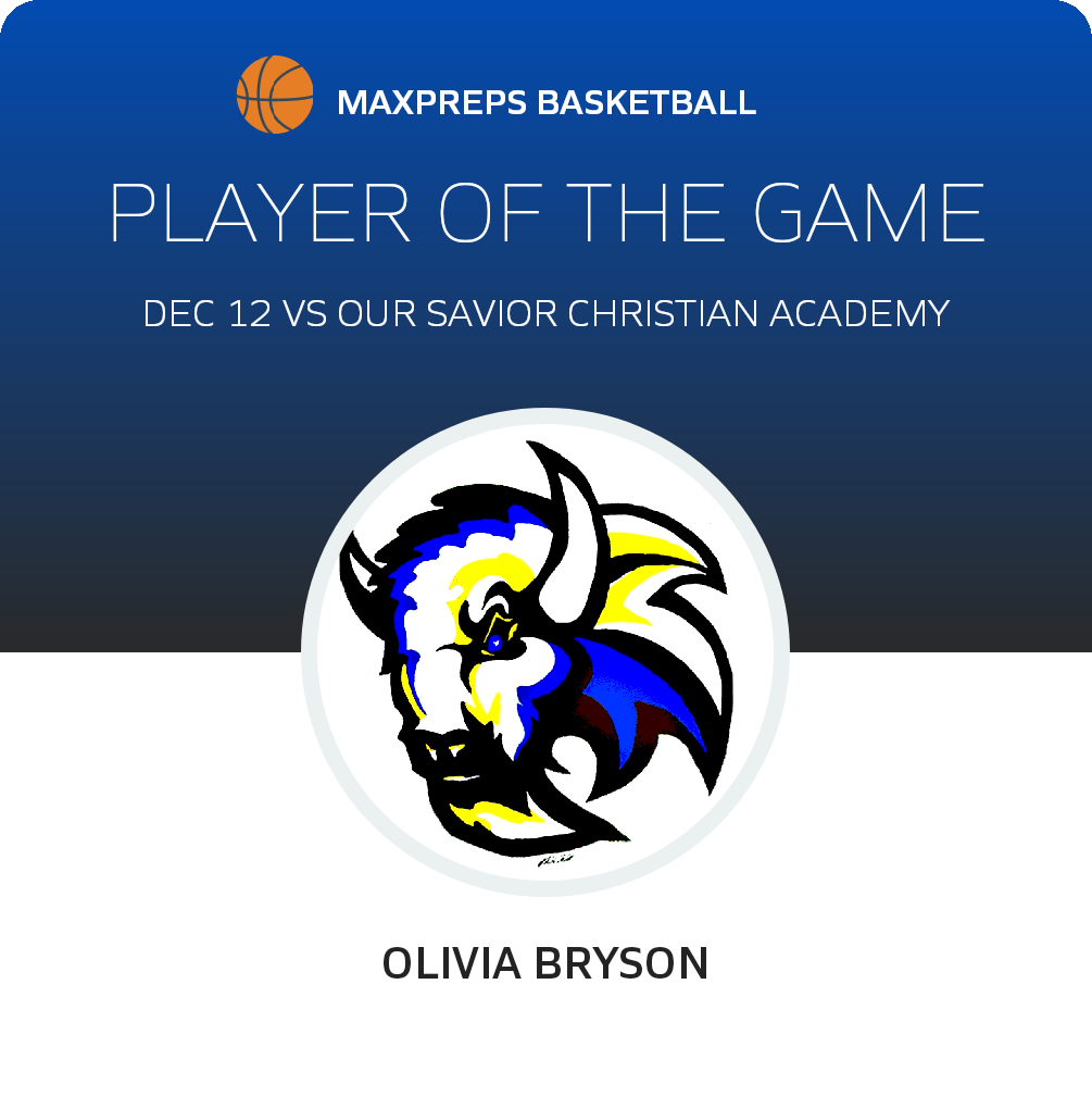 Congratulations to #21 Olivia Bryson for being selected the El Dorado Christian Girls Basketball Player of the Game.
