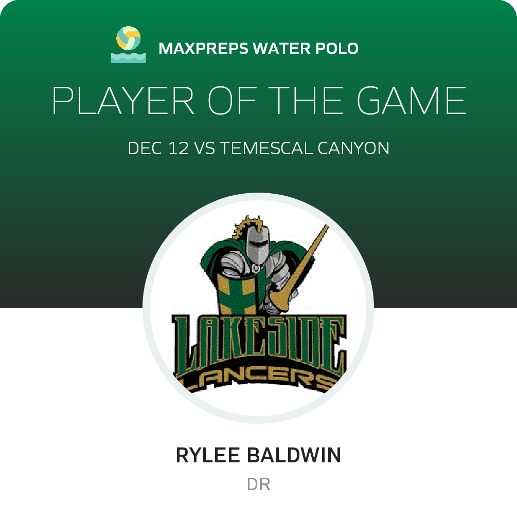 Congratulations to #3 Rylee Baldwin for being selected the Lakeside Girls Water Polo Player of the Game.
