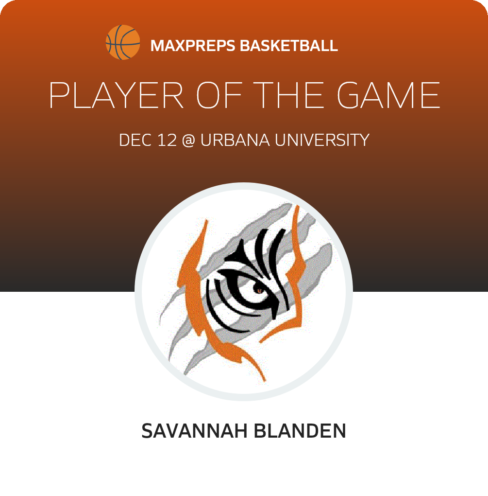 Congratulations to #22 Savannah Blanden for being selected the Urbana Girls Basketball Player of the Game.