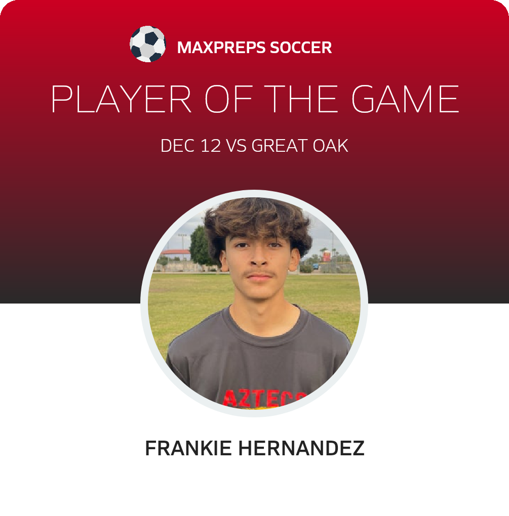 Congratulations to #8 Frankie Hernandez for being selected the Palm Desert JV Soccer Player of the Match.