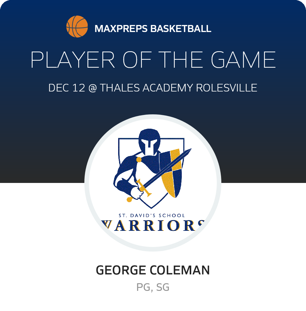 December 12, 2024: Rolesville, NC 27571 In Thursday's non-league test, the St. David's Warriors (Raleigh, NC) basketball squad knocked off the host Thales Academy Rolesville Knights (Rolesville, NC), by a score of 57-41.