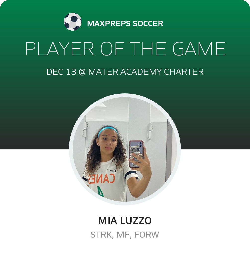 December 13, 2022: Hialeah Gardens, FL 33016 The Somerset Academy South Homestead Hurricanes (Homestead, FL) soccer the host Mater Academy Charter Lions (Hialeah Gardens, FL), 3-0 in Tuesday's non-league bout.
