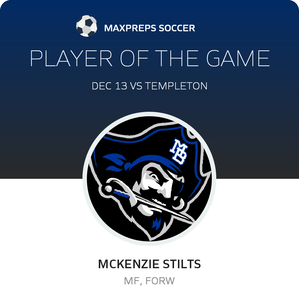 Congratulations to #17 McKenzie Stilts for being selected the Morro Bay Girls Soccer Player of the Match.