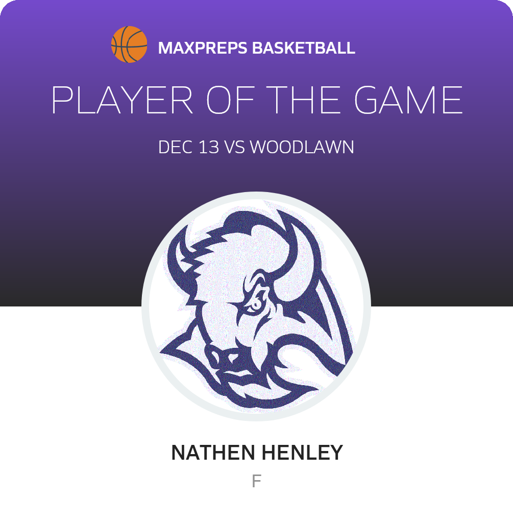 Congratulations to #5 Nathen Henley for being selected the Parker Basketball Player of the Game.