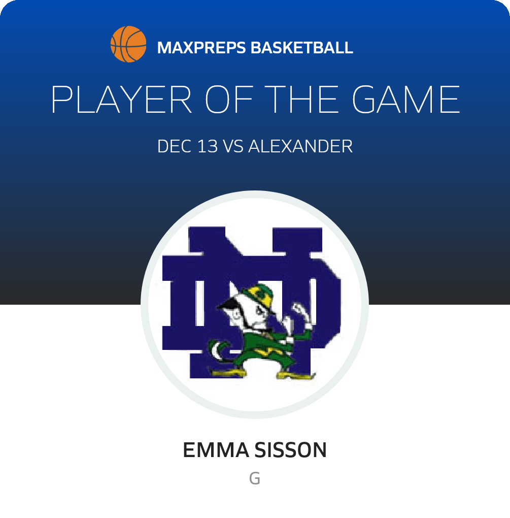 Congratulations to #1 Emma Sisson for being selected the Notre Dame Girls Basketball Player of the Game.