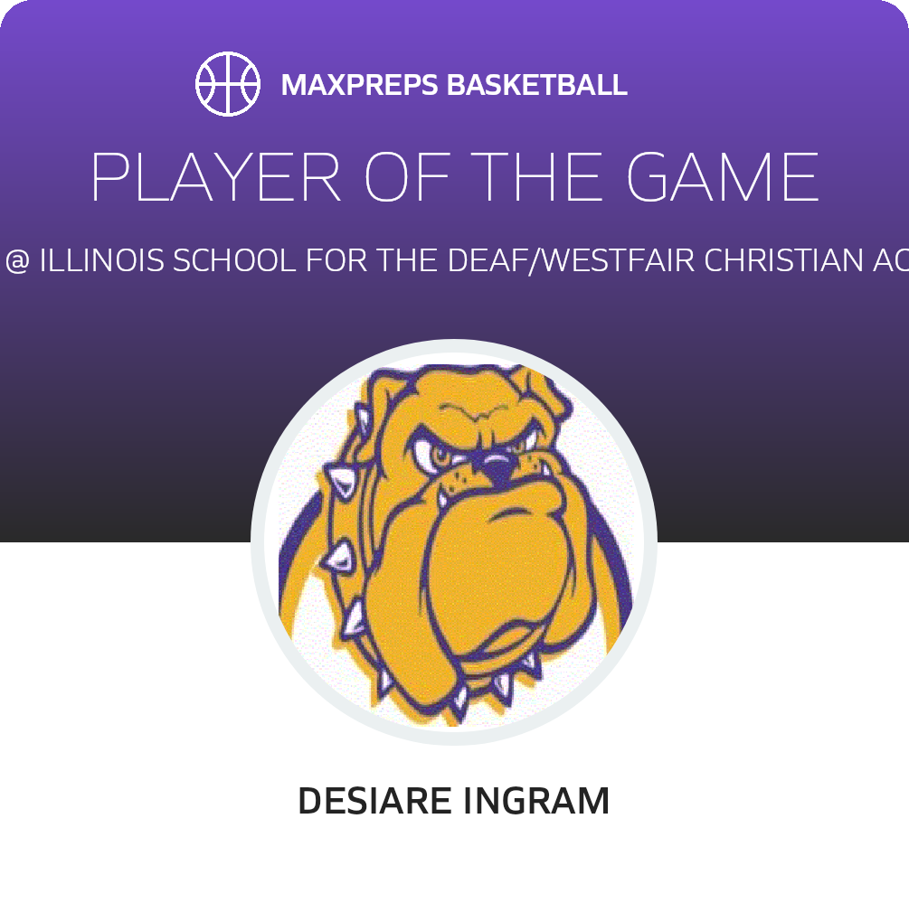 Congratulations to #3 DeSiare Ingram for being selected the Mississippi School for the Deaf Girls Basketball Player of the Game.