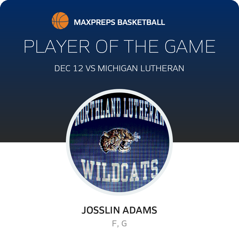 Congratulations to #12 Josslin Adams for being selected the Northland Lutheran Girls Basketball Player of the Game.