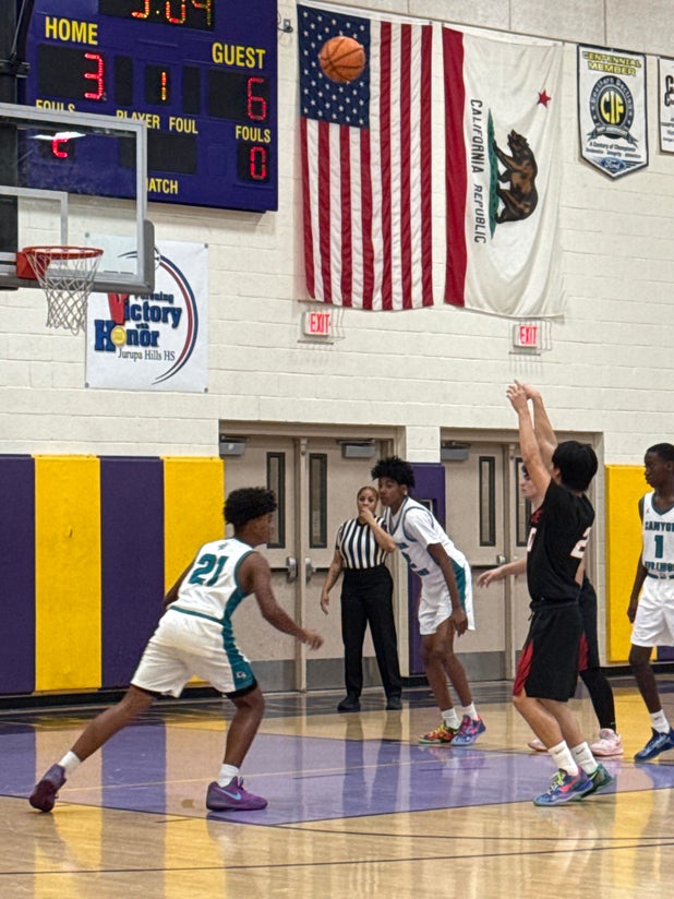 December 13, 2025: Moreno Valley, CA 92557 In Saturday's non-league bout, the Etiwanda Eagles (Etiwanda, CA) basketball team crushed the host Canyon Springs Cougars (Moreno Valley, CA), by a tally of 56-15.