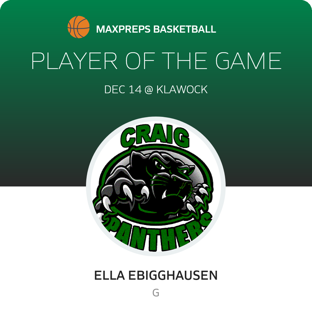 Congratulations to #4 Ella Ebigghausen for being selected the Craig Girls Basketball Player of the Game.