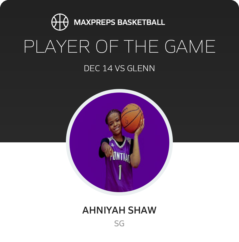 Congratulations to #1 Ahniyah Shaw for being selected the Pontiac Girls Basketball Player of the Game.