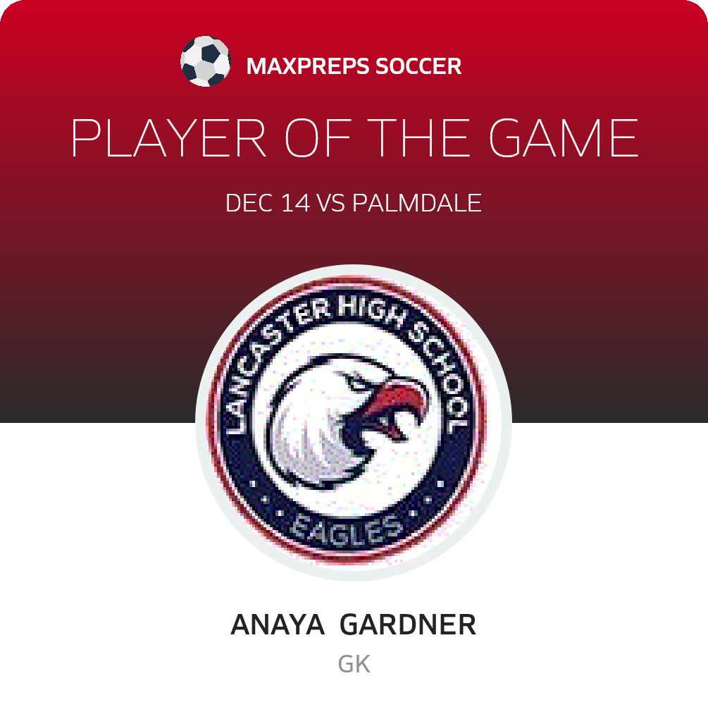 Congratulations to #1 Anaya Gardner for being selected the Lancaster Girls Soccer Player of the Match.