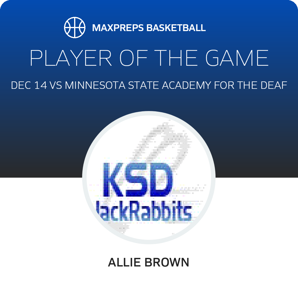 Congratulations to #33 Allie Brown for being selected the Kansas School for the Deaf Girls Basketball Player of the Game.