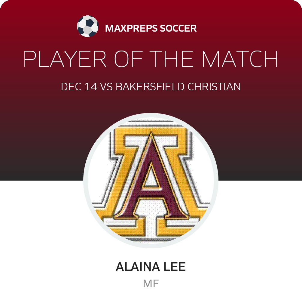 Congratulations to #12 Alaina Lee for being selected the Arcadia Girls Soccer Player of the Match.