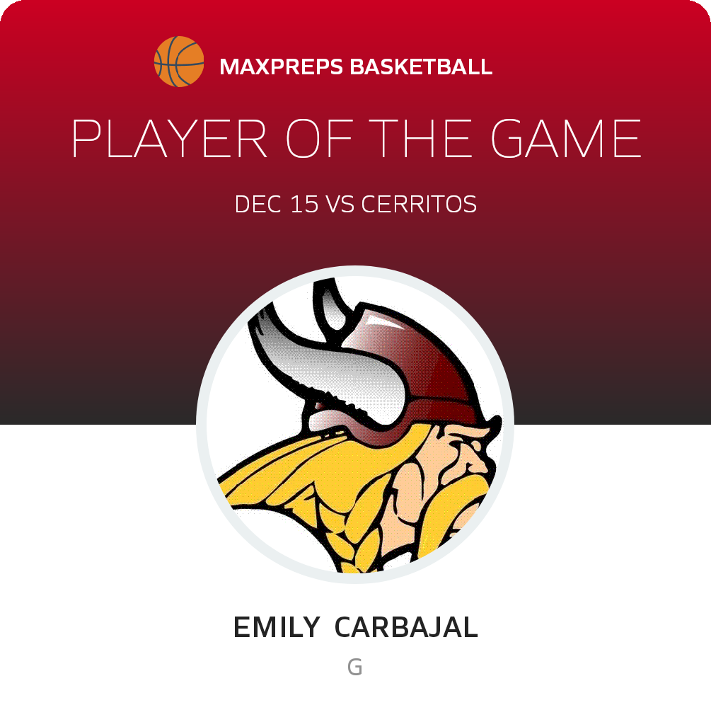 Congratulations to #14 Emily Carbajal for being selected the Downey Girls Freshman Basketball Player of the Game.