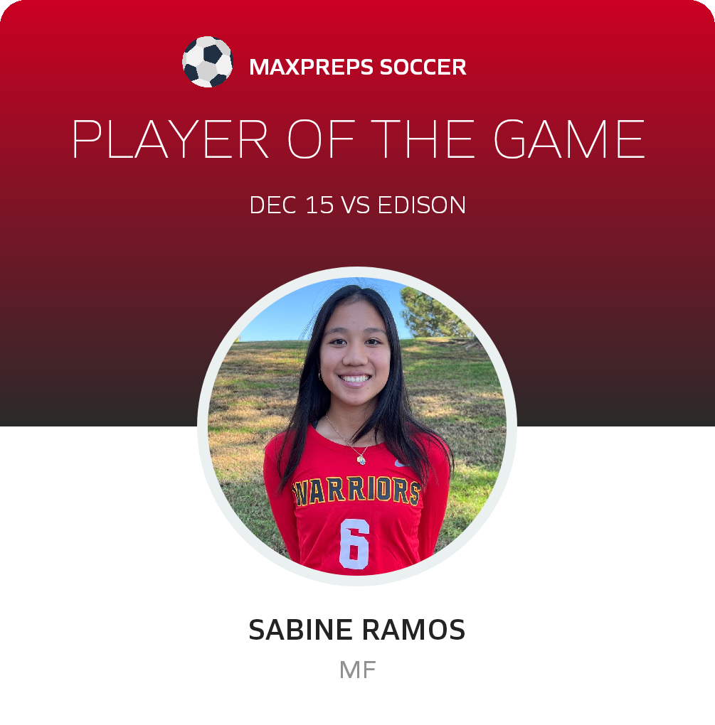 Congratulations to #6 Sabine Ramos for being selected the Woodbridge Girls Soccer Player of the Match.