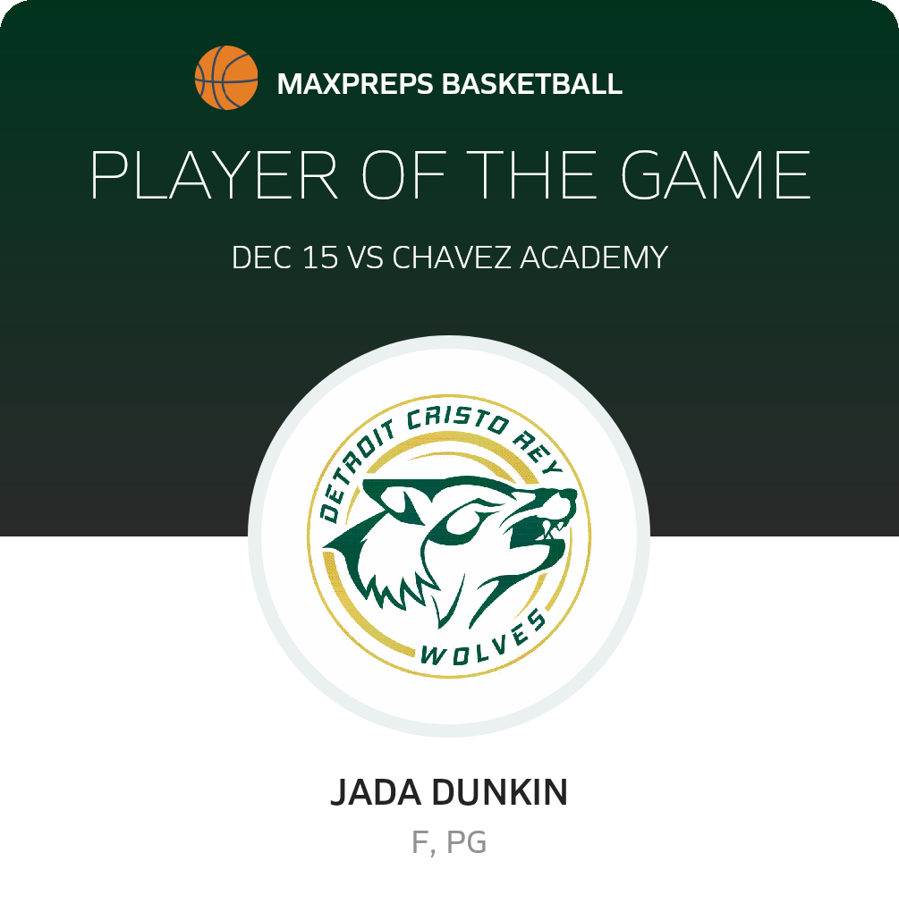 Congratulations to #2 Jada Dunkin for being selected the Detroit Cristo Rey Girls Basketball Player of the Game.