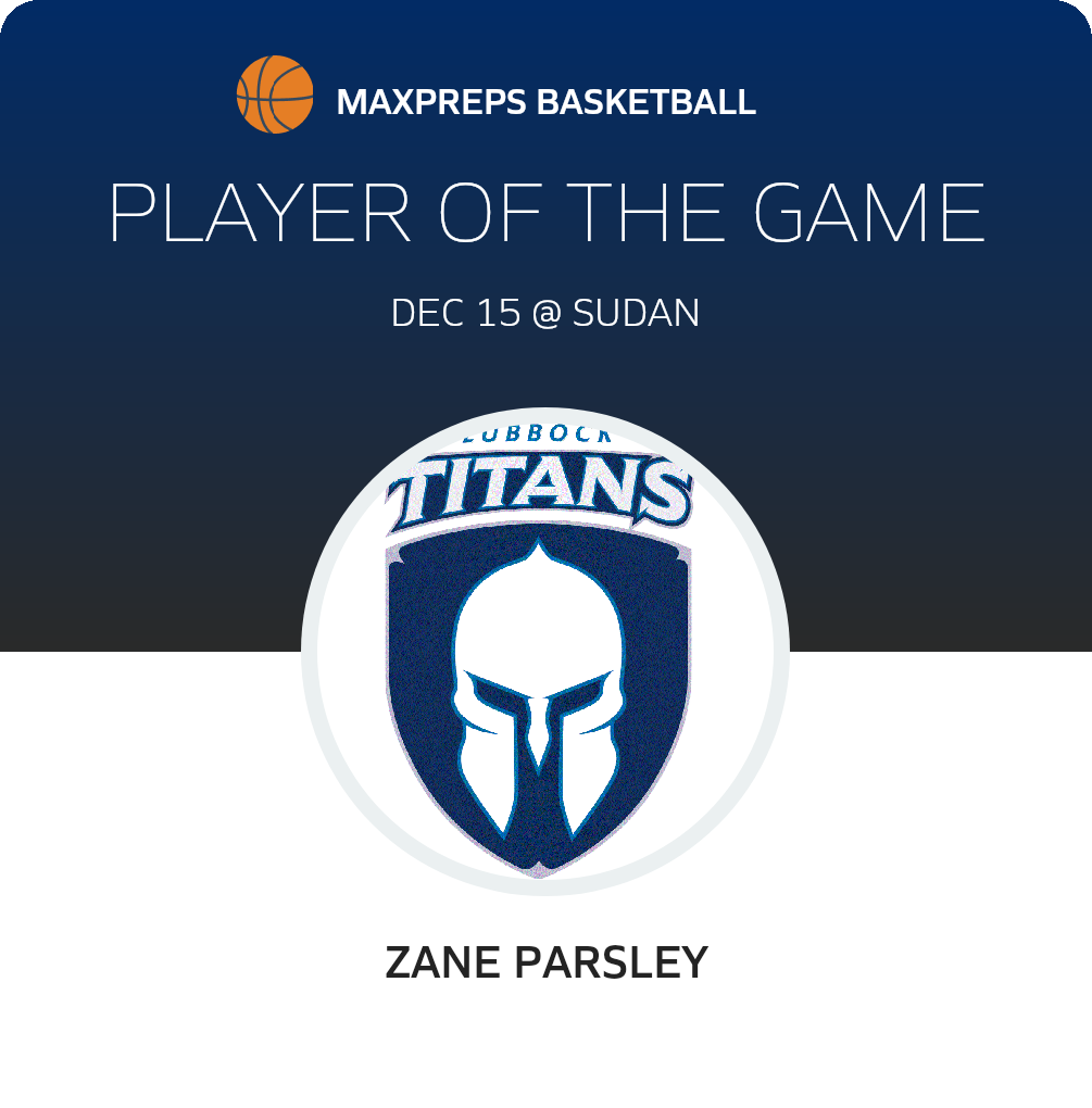 Congratulations to #24 Zane Parsley for being selected the Lubbock Titans JV Basketball Player of the Game.