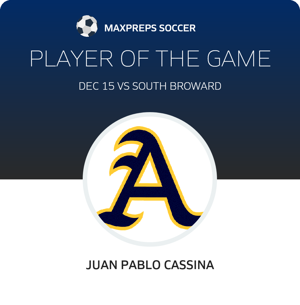 Congratulations to #22 Juan Pablo Cassina for being selected the St. Thomas Aquinas Soccer Player of the Match.