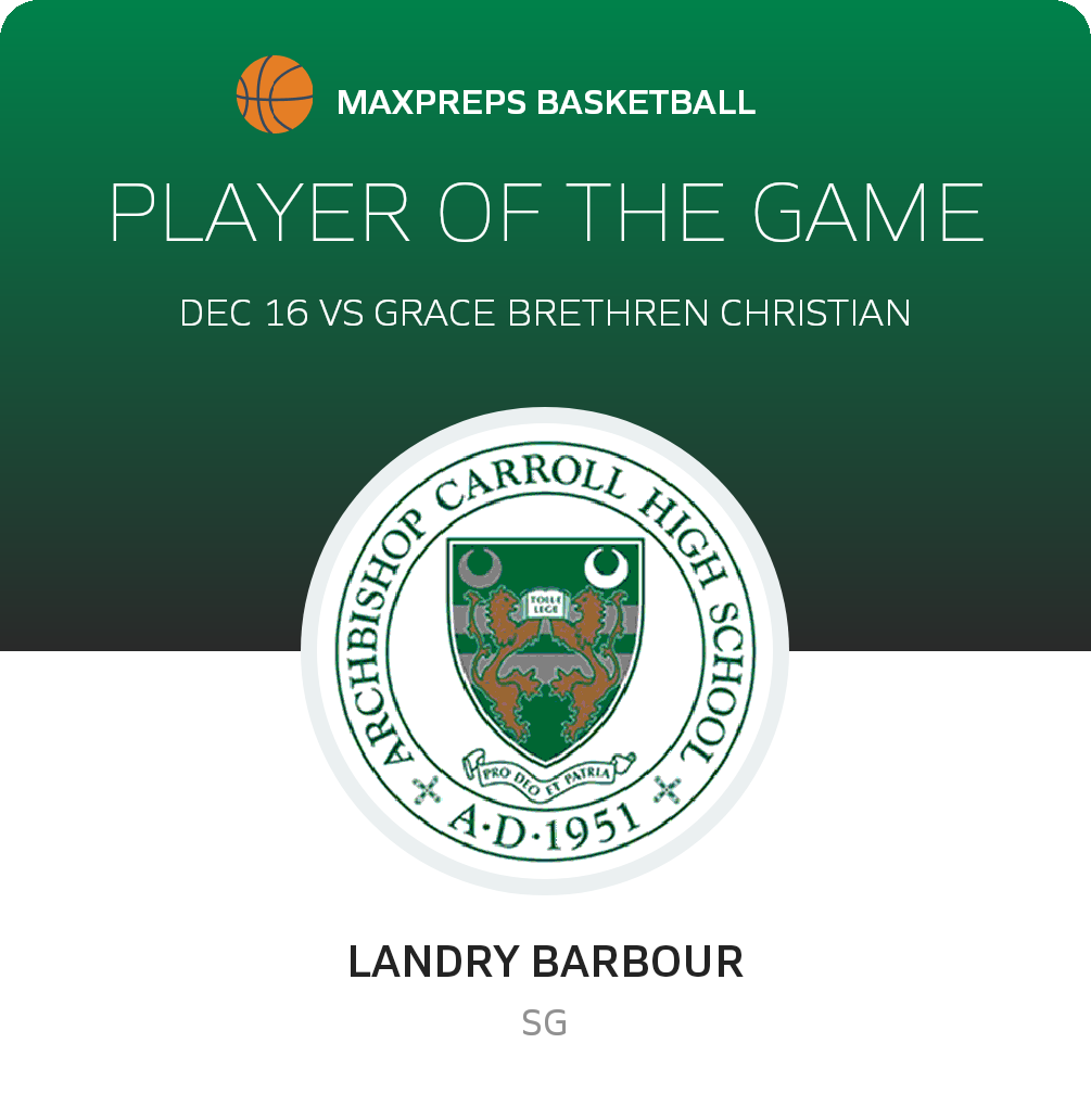 Washington, DC High School Basketball - Archbishop Carroll can't hold off Grace Brethren Christian