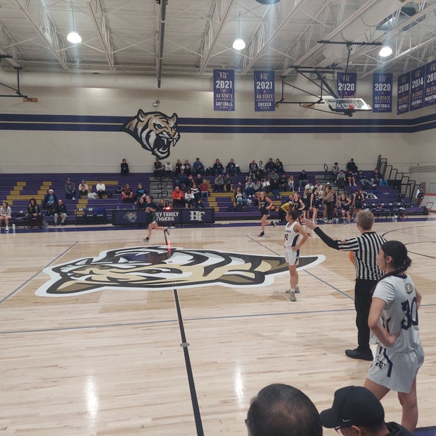 December 16, 2022: Broomfield, CO 80020 Holy Family Tigers (Broomfield, CO) backers were pleased Friday as they saw their basketball squad knock off the visiting University Bulldogs (Greeley, CO), 38-27 in a league bout.