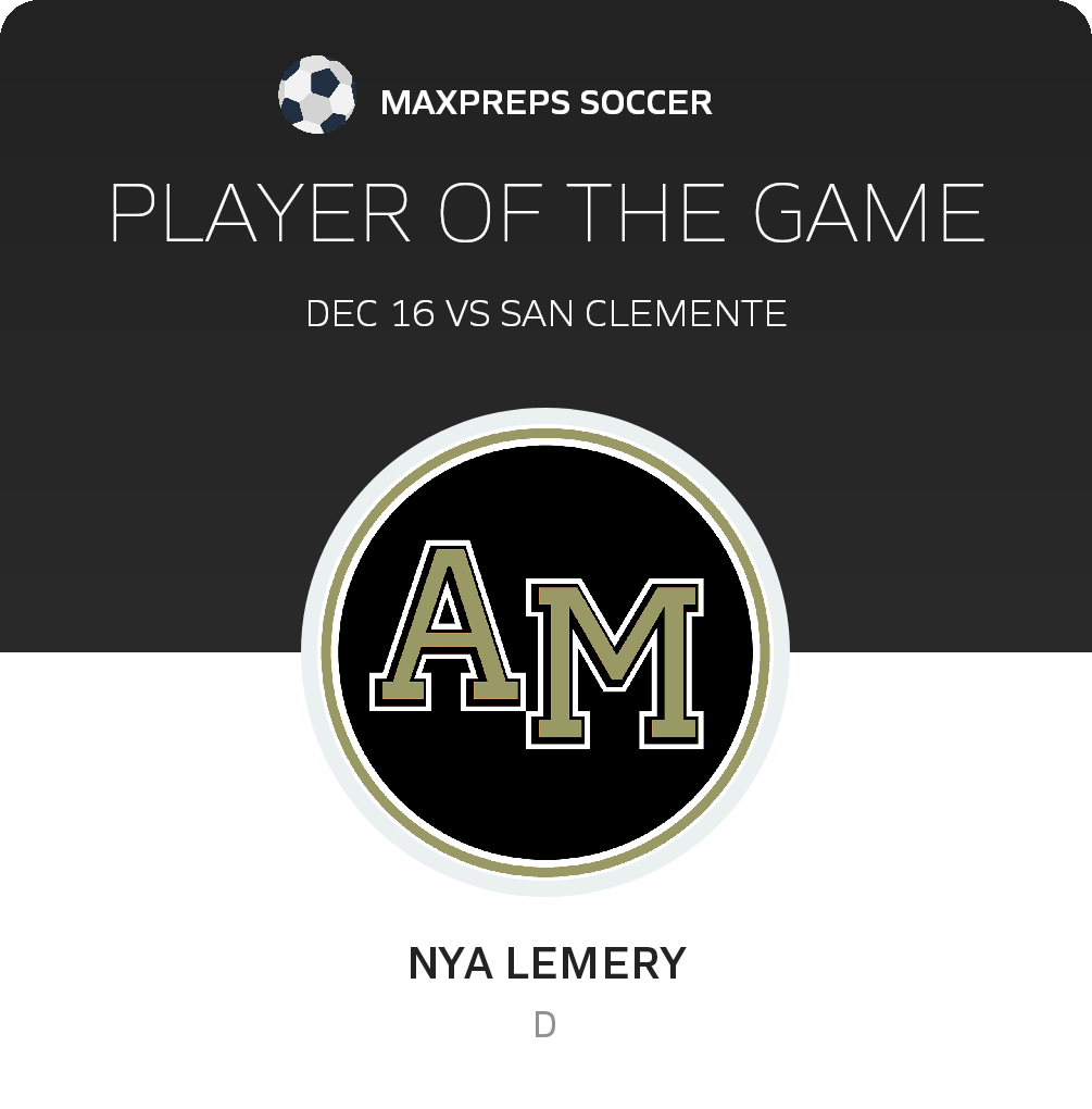 Congratulations to #6 Nya Lemery for being selected the Archbishop Mitty Girls Soccer Player of the Match.