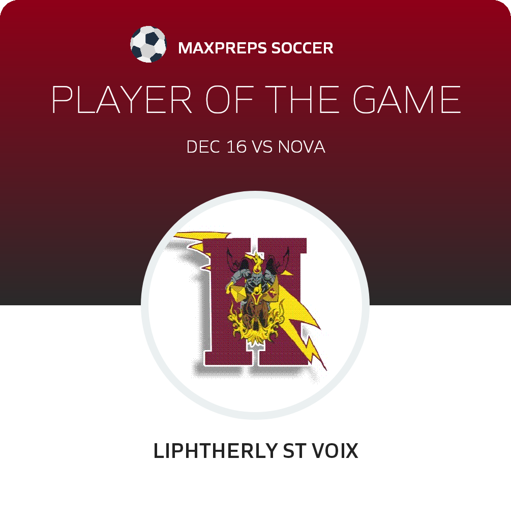 Congratulations to Liphtherly St Voix for being selected the Hallandale Soccer Player of the Match.
