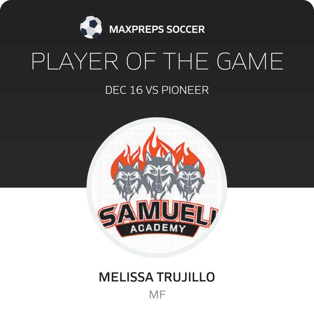 Congratulations to Melissa Trujillo for being selected the Samueli Academy Girls Soccer Player of the Match.