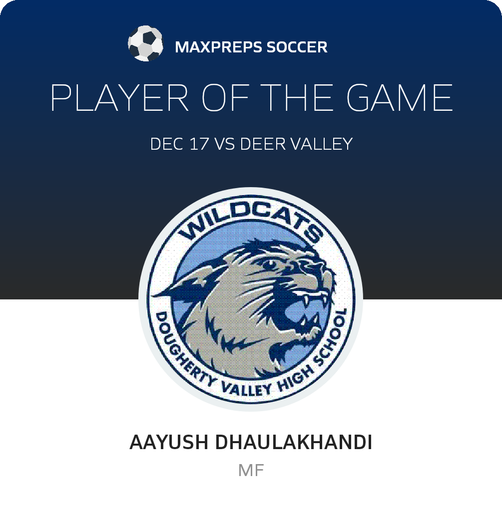 Congratulations to #6 Aayush Dhaulakhandi for being selected the Dougherty Valley Freshman Soccer Player of the Match.