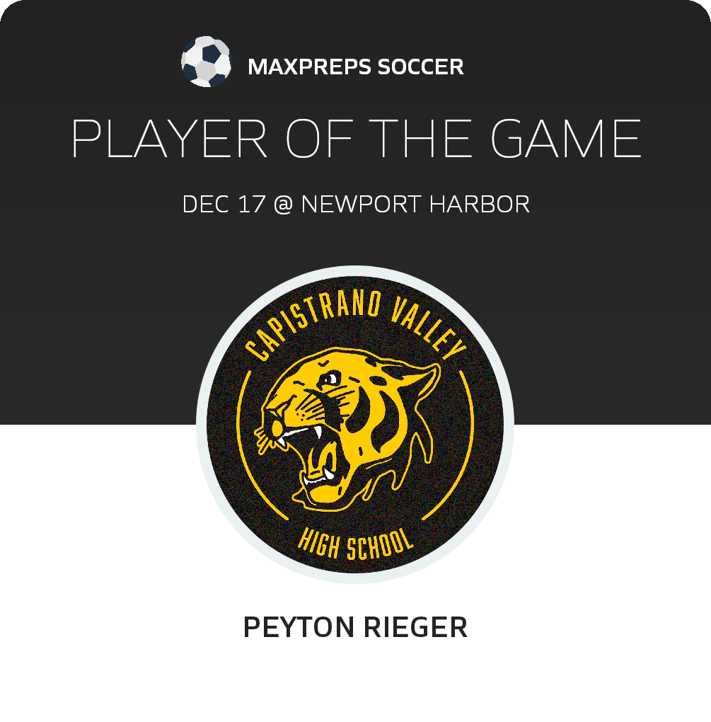 Congratulations to #5 Peyton Rieger for being selected the Capistrano Valley Girls JV Soccer Player of the Match.