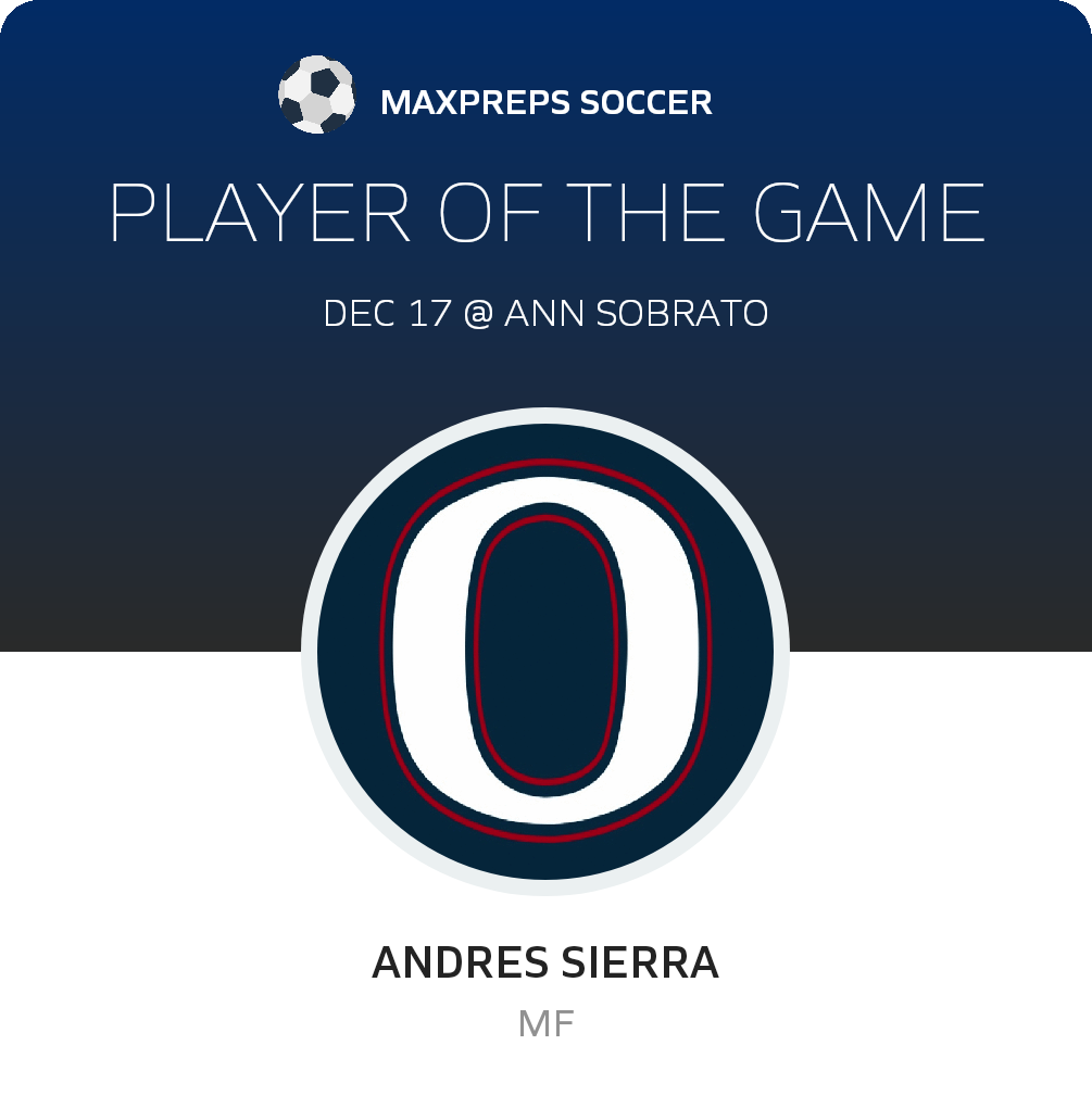 Congratulations to Andres Sierra for being selected the Overfelt JV Soccer Player of the Match.